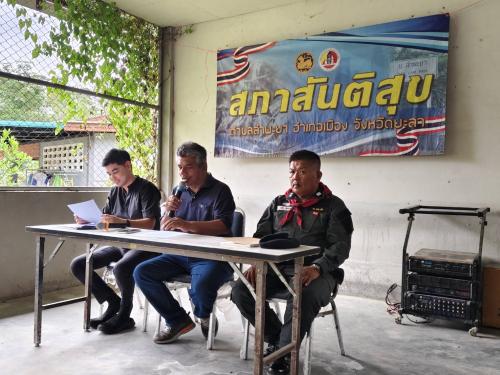 นายเอกสิทธิ์ เลาะมิง พัฒนาการอำเภอเมืองยะลา มอบหมายให้นางสาวมาลีรัตน์ ภักดีฉนวน นักวิชาการพัฒนาชุมชนชำนาญการ พัฒนากรผู้ประสานงานตำบลลำพะยา ร่วมประชุมสภาสันติสุขตำบลลำพะยา