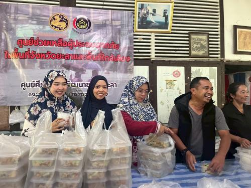 นายเอกสิทธิ์ เลาะมิง พัฒนาการอำเภอเมืองยะลา พร้อมด้วยเจ้าหนเาที่พัฒนาชุมชน ร่วมกิจกรรมโรงครัวศูนย์ศึกษาและพัฒนาชุมชนยะลา อำเภอเมืองยะลา ร่วมจัดทำอาหารปรุงสุก เพื่อนำไปแจกจ่ายให้กับประชาชนที่ประสบอุทกภัยในพื้นที่จังหวัดชายแดนภาคใต้