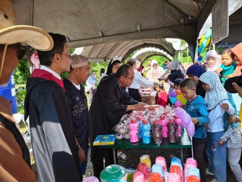 ทั้งนี้ นางเซาเดาะ โต๊ะปิ ประธานกลุ่ม OTOP กะลาท่าสาป ตำบลท่าสาป มาร่วมแจกของขวัญวันเด็กในกิจกรรมครั้งนี้ด้วย
